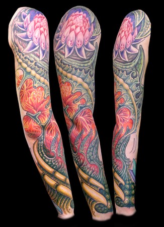 Full sleeve tattoos start at the top of the shoulder and stretch down the entire arm to the wrist. And if you fully intend on getting a sleeve tattoo, its absolutely essential to pick out the right tattoo artist for the job, and the best way to evaluate an artist is to view his previous work, so don't be afraid to ask.